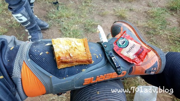 Struggling with some places to get food we have to find alternative solutions to get our energy back. So we source food on the way and eat in the evening or on the road. But we have no cutting board with us. The multipurpose boot was invented. We integrated a cutting board to our Gaerne Boots. Or better the italian designers did that.